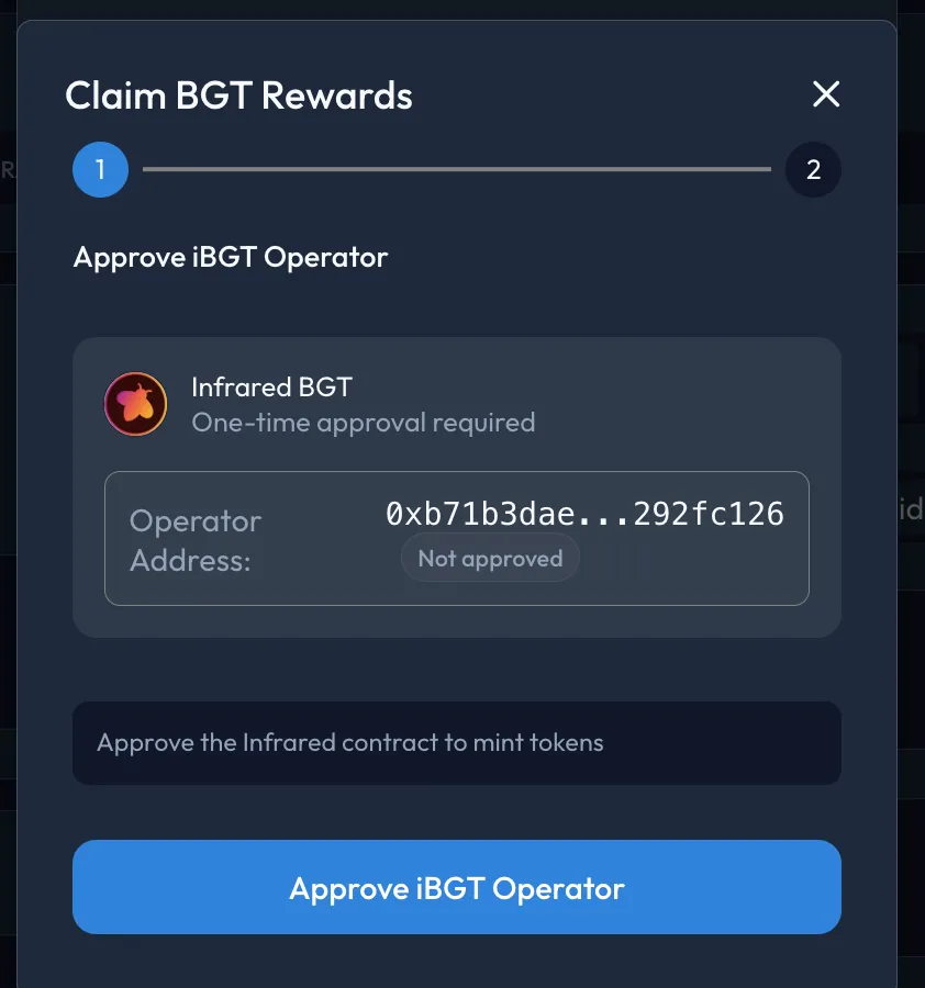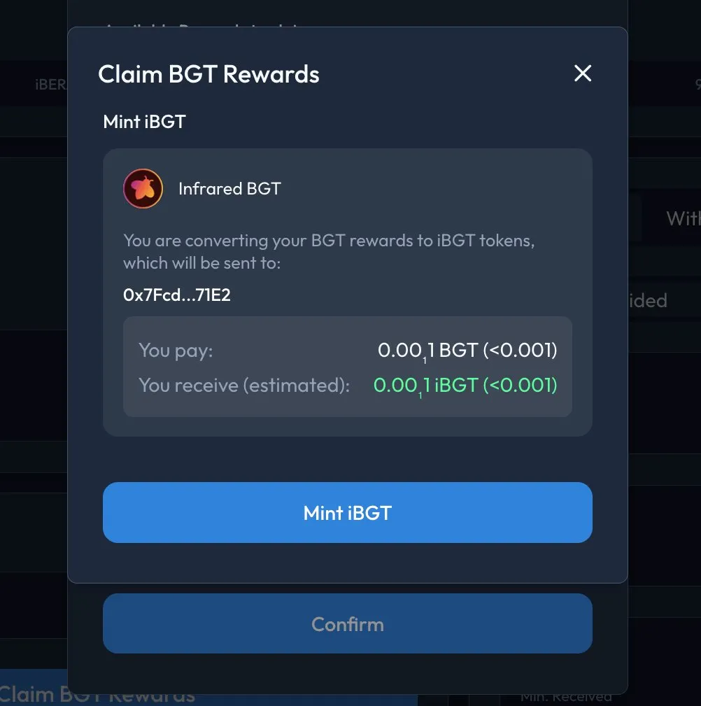We now allows liquidity providers (LPs) staked in Berachain Reward Vaults to claim their BGT rewards and directly mint BGT liquid wrappers through the our UI. This feature enables users to choose from multiple liquid wrapper options and see real-time premium rates before minting.