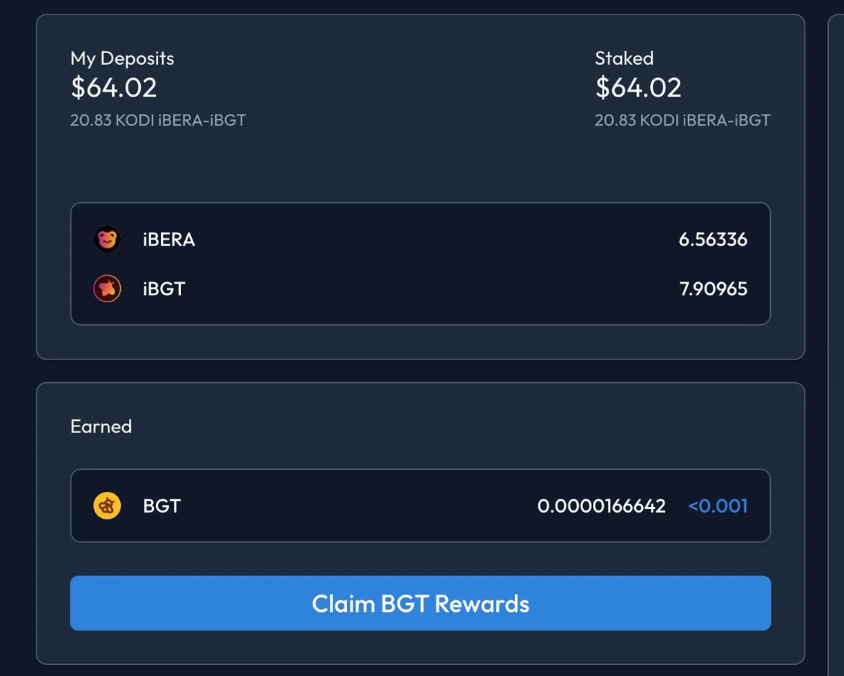 3. **Accumulate BGT Rewards**: Wait for BGT rewards to accrue from your staked position
